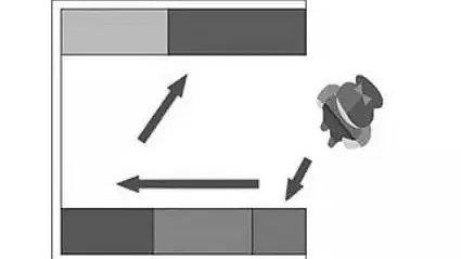 将工作区安排在两边平行线上,储藏量增加,且操作平面较多。但操作者经常需要转180°